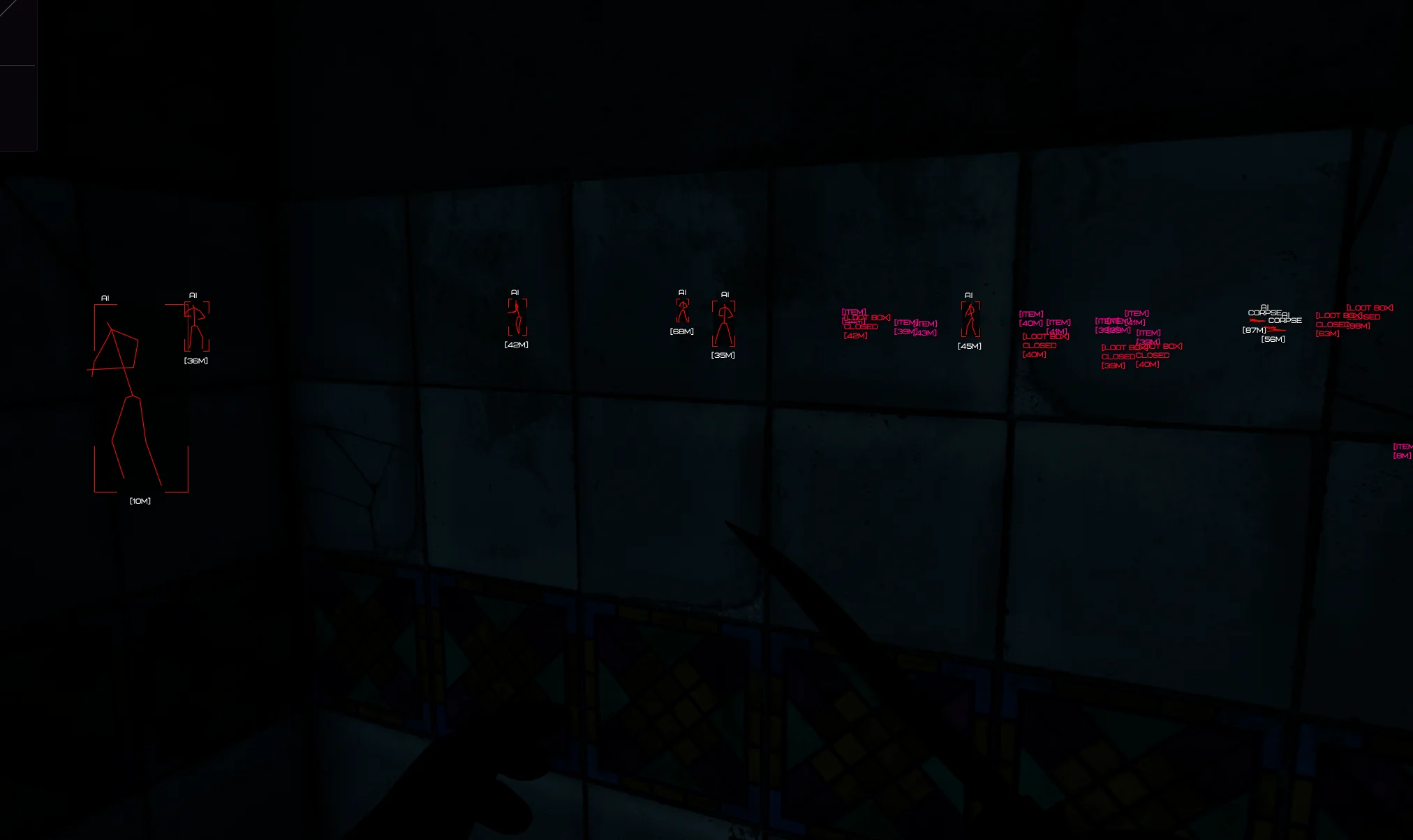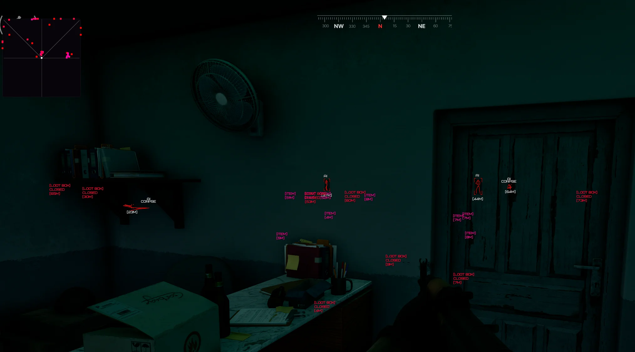 The built‑in radar displays players, loot and containers. Scale, point size and colors can be configured, making it a convenient navigation tool.